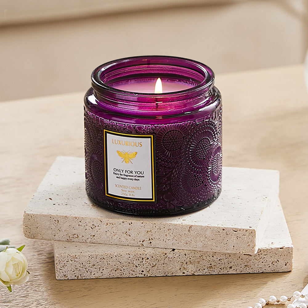 Blackberry & Laurel Scented Candle Gift Box, Colored Glass Cup Candle