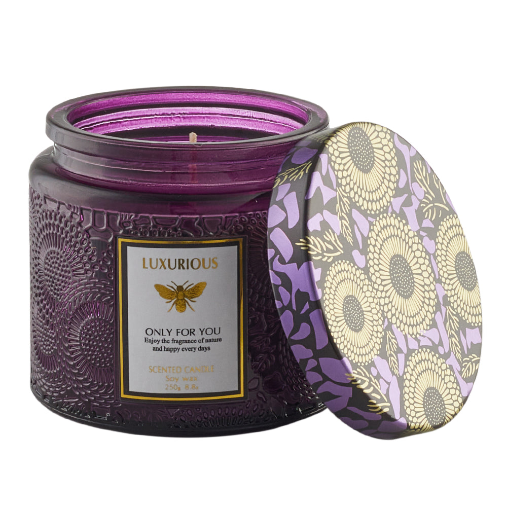 Juniper & Lavender Scented Candle, Handmade Soy Wax in Embossed Cup