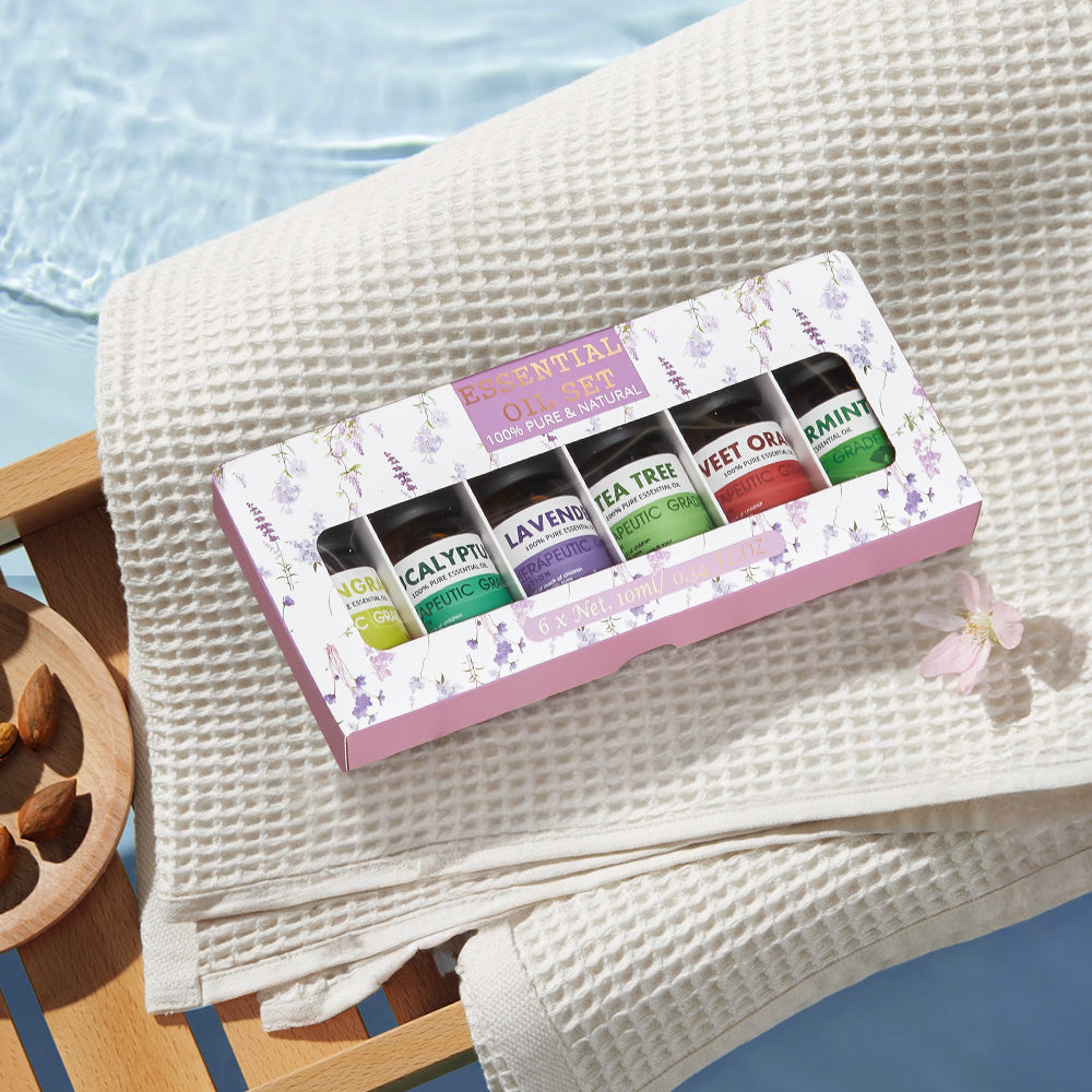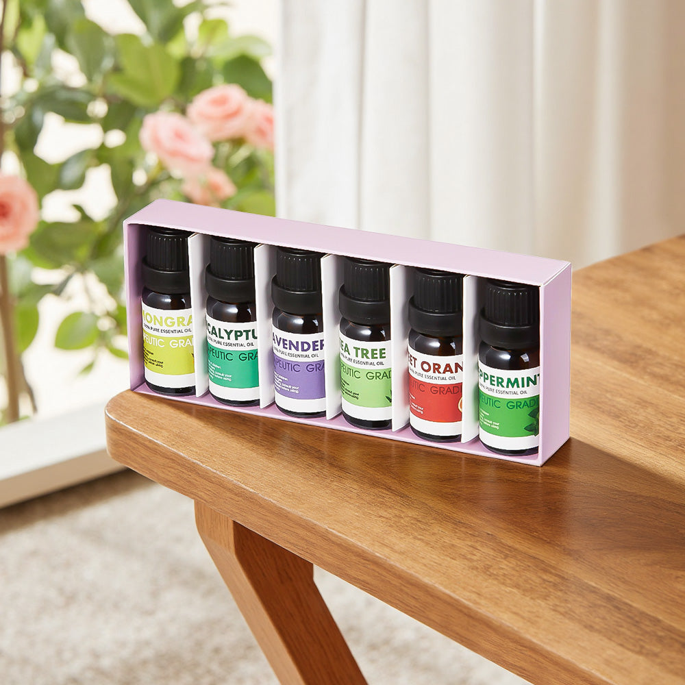 Aromatherapy Essential Oil Set with 6 Different Scents, Pink Version